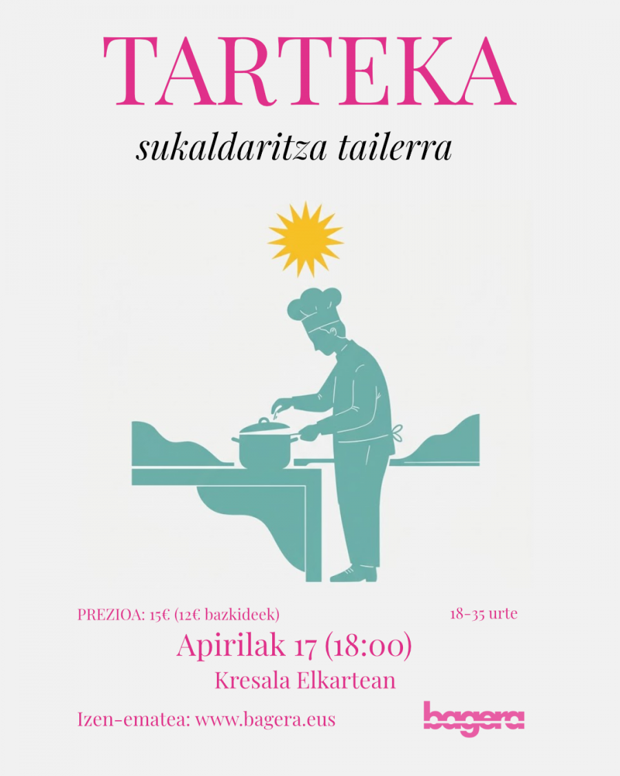 Gazteen artean euskarazko harremanak estutzeko eta aisialdiaz komunitatean gozatzeko helburuarekin, Tarteka egitasmoak aurrera jarraitzen du. Eskalada ikastaroarekin urteari hasiera eman ostean, apirilerako plan goxoago bat prestatu dugu Bageran: sukaldaritza tailerra. Saio honetan, sukaldean aritzeko trebetasunak landu eta elkarrekin errezeta berriak prestatzeko aukera izango dugu, betiere...